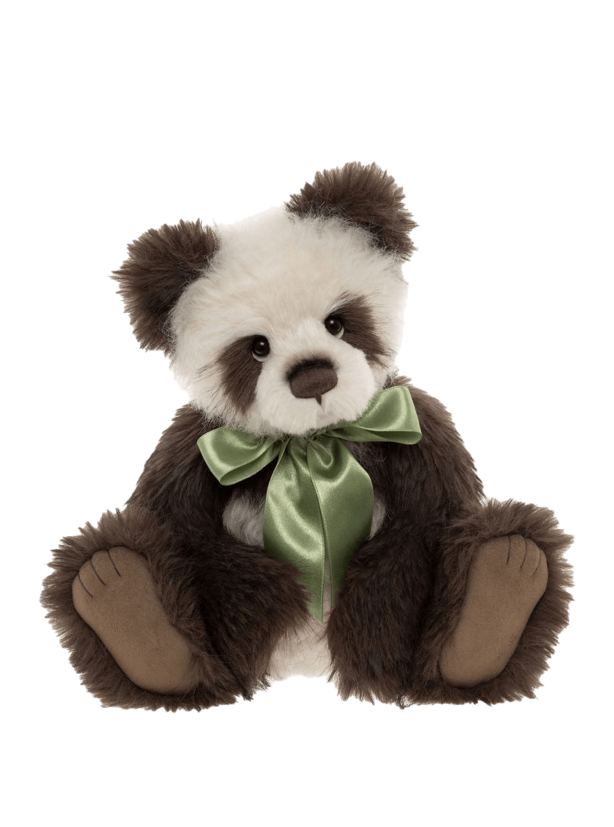 Meet Absolom, an a-paw-able panda crafted from a luxurious blend of chocolate-brown and snowy-white plush fur. He’s paw-fectly finished with a beautiful green bow, neatly tied around his neck for a touch of charm. Absolom features delightfully tickly toe detailing on his paw pads and has a playful personality to match - this growling panda loves to roar! Don’t forget to discover his fellow growler friends, Jackson and Snowden. Suitable for ages 3 years+. Panda height: 41cm/16"/13.5 Bear Paws.