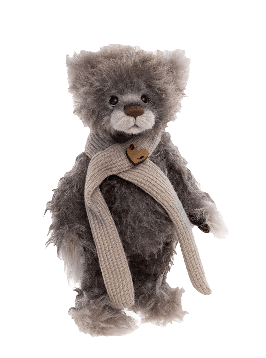 Meet Anniversary Sylvester, a very special bear created to celebrate 20 years of Charlie Bears magic, and a proud addition to the 2025 Isabelle Collection. Inspired by the much-loved Sylvester from 2017, don’t miss your chance to relive the charm of this beloved character. He's beautifully handcrafted from a luxurious mix of mohair and alpaca in soft grey tones, and has a charming, tousled look. Anniversary Sylvester has a brown hand-embroidered nose, a lightly trimmed lighter grey muzzle with delicate airbrushing, and the unmistakable Charlie Bears "who me?" expression we know you adore. His look is completed with a creamy beige knitted scarf, adorned with a wooden heart charm and a red faceted bead accent. Limited edition of just 200 pieces worldwide. Suitable for ages 14 years+. Bear height: 33cm/13”/11 Bear Paws. To register your interest in Anniversary Sylvester, please send us a message to headbear@charliebears.com.