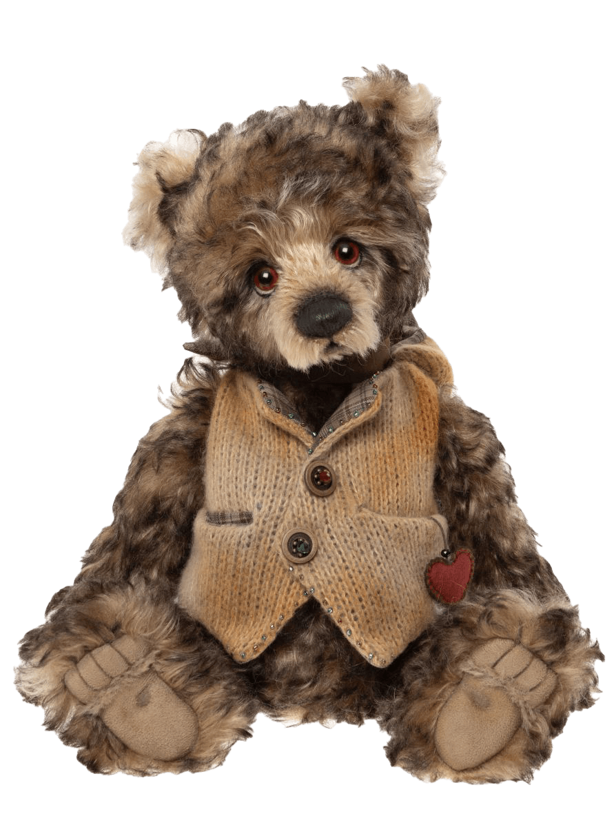 Bilbo is a beautifully crafted limited edition bear from the 2026 Isabelle Collection. Made from richly textured mohair and alpaca in warm, earthy brown tones, he has a timeless character and an irresistibly endearing “Who, me?” expression. Dressed in a detailed knitted waistcoat with button accents and an adorable heart charm, Bilbo is a true collector’s piece with vintage charm.