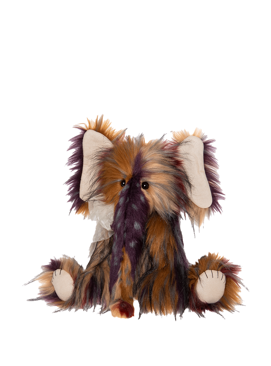 Meet Eustace the Elephant. Crafted with love, Eustace is made from luxuriously soft long pile plush fur, designed to provide endless cuddles and comfort. His charming personality shines through with meticulously hand-embroidered toes and a dapper bow, making him a delightful addition to any collection. Recommended for ages 3 years+. Elephant height: 35cm/14”/12 Bear Paws.