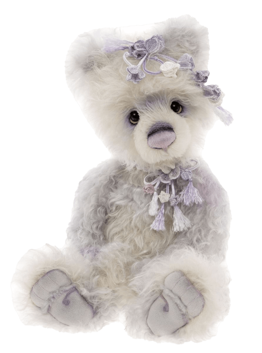This enchanting bear has been specially chosen by Isabelle Lee to hold the im-paw-tant title of Isabelle Masterpiece 2026, proudly representing the collection for the year. Crafted from luxurious mohair and alpaca in soft cream with gentle lilac shading, she has a delicate, ethereal beauty and the signature “Who, me?” expression that we know you adore. Her hand-embroidered nose, subtly trimmed and airbrushed muzzle, and soulful eyes give her a wonderfully tender character. Adorned with a floral lace headpiece and coordinating necklace in soft pastel hues, she is a truly breath-taking centrepiece bear.