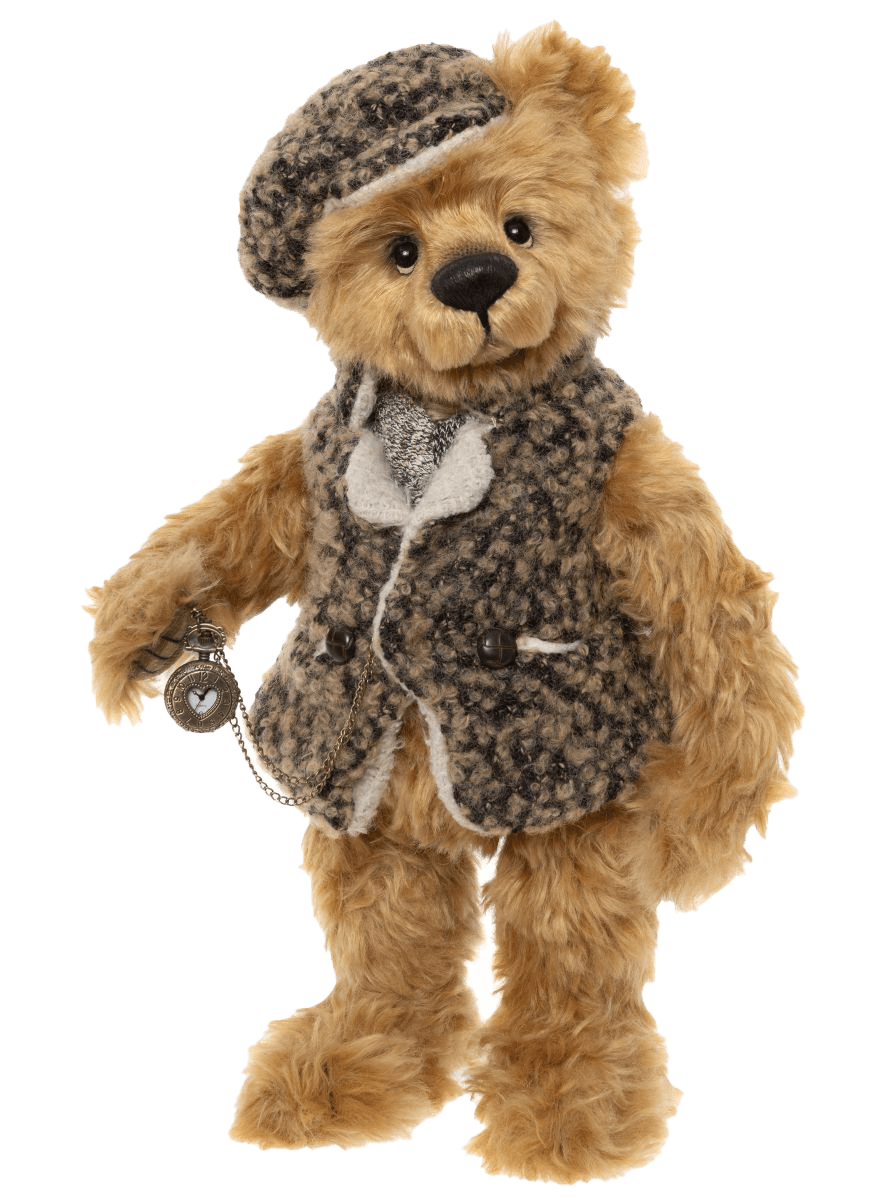Mr Higgins is a distinguished gentleman from the 2026 Isabelle Collection. Crafted from sumptuously soft mohair in warm honey-brown tones, he has a wonderfully expressive face and a gentle, inquisitive charm that is simply irresistible. Dressed in a beautifully textured waistcoat with a coordinating hat and carries an antique-style pocket watch, adding to his vintage-inspired appeal.