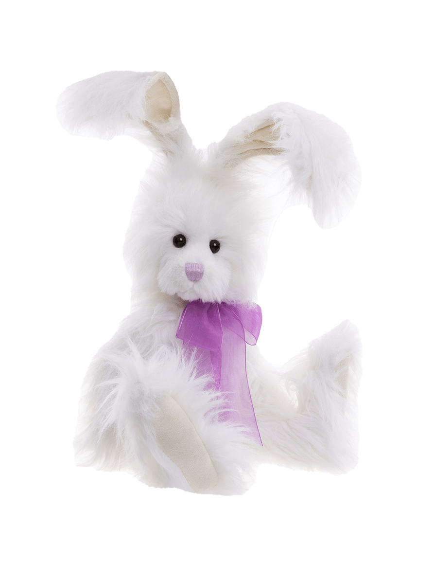 Nikini is sure to make a delightful addition to your hug. Part of the 2025 “Our Journey So Far” Collection, this bear-utiful bunny is lovingly crafted from luxuriously soft white plush that’s simply irresistible to cuddle. Her gentle expression is brought to life with a delicately hand-embroidered lilac nose, expressive dark eyes, and a softly trimmed muzzle that adds to her sweet charm. Nikini’s long, poseable ears, lined with a soft beige fabric that perfectly complements her matching paw pads, offer endless display possibilities. Finishing her look is a graceful lilac organza bow tied neatly around her neck, adding a touch of elegance to her playful personality. Suitable for ages 3 years+. Rabbit height: 38cm/15"/12.7 Bear Paws.