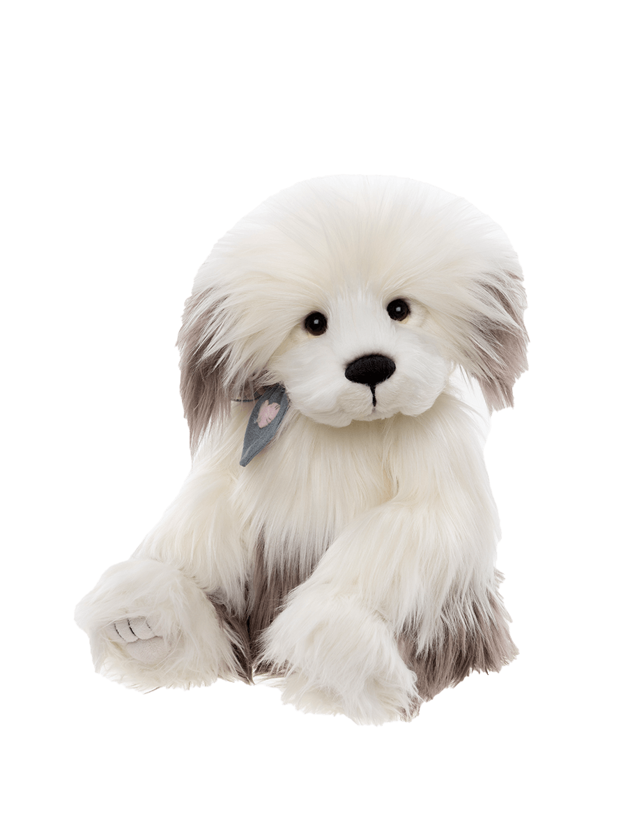 Fully jointed for playful poseability, Old Faithful is a charming pup crafted from luxuriously soft, long-pile plush in gentle cream and grey-brown tones. His hand-embroidered nose, sculpted paws, and endearing expression bring him to life with irresistible character. A stylish neckerchief adds a touch of personality, perfectly complementing his warm and loyal spirit. Old Faithful captures the steadfast loyalty and warmth that make dogs such treasured companions. Welcome this lovable pup into your home and let him be by your faithful friend through every adventure! Suitable for ages 3 years+. Dog height: 46cm/18”/15.3 Bear Paws. To register your interest in Old Faithful, please send us a message to headbear@charliebears.com.