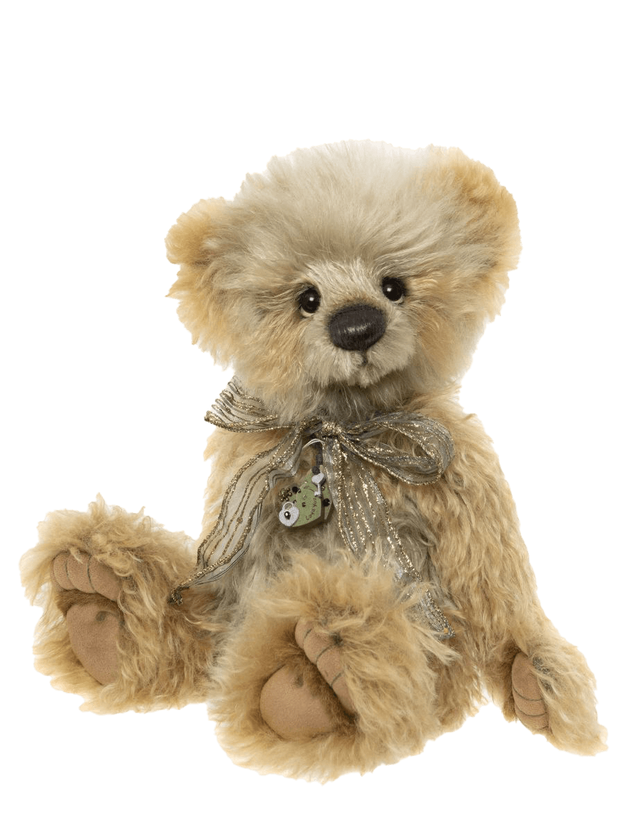 Pickesrgill is an enchanting panda from the 2026 Isabelle Collection, full of warmth and timeless charm. Crafted from sumptuously soft golden-toned mohair with subtle alpaca accents, he is simply irresistible. His hand-embroidered brown nose and sculpted paw pads with tickly toe detailing enhance his lifelike character, making him a truly special companion. He is elegantly accessorised with a shimmering organza bow tied neatly at his neck and adorned with a delicate necklace that adds a refined touch of personality and sparkle.