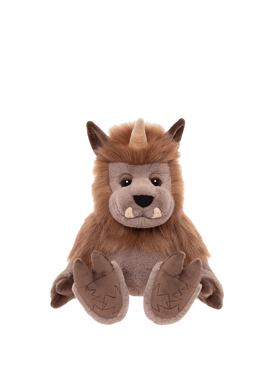 With his plush brown fur, wide, friendly smile and single proud horn atop his head, Quarry brings a touch of rugged charm to every cuddle. His cosy, non-jointed body and oversized paws make him perfect for bedtime hugs, playful adventures, or simply sitting guard on your pillow when night falls.