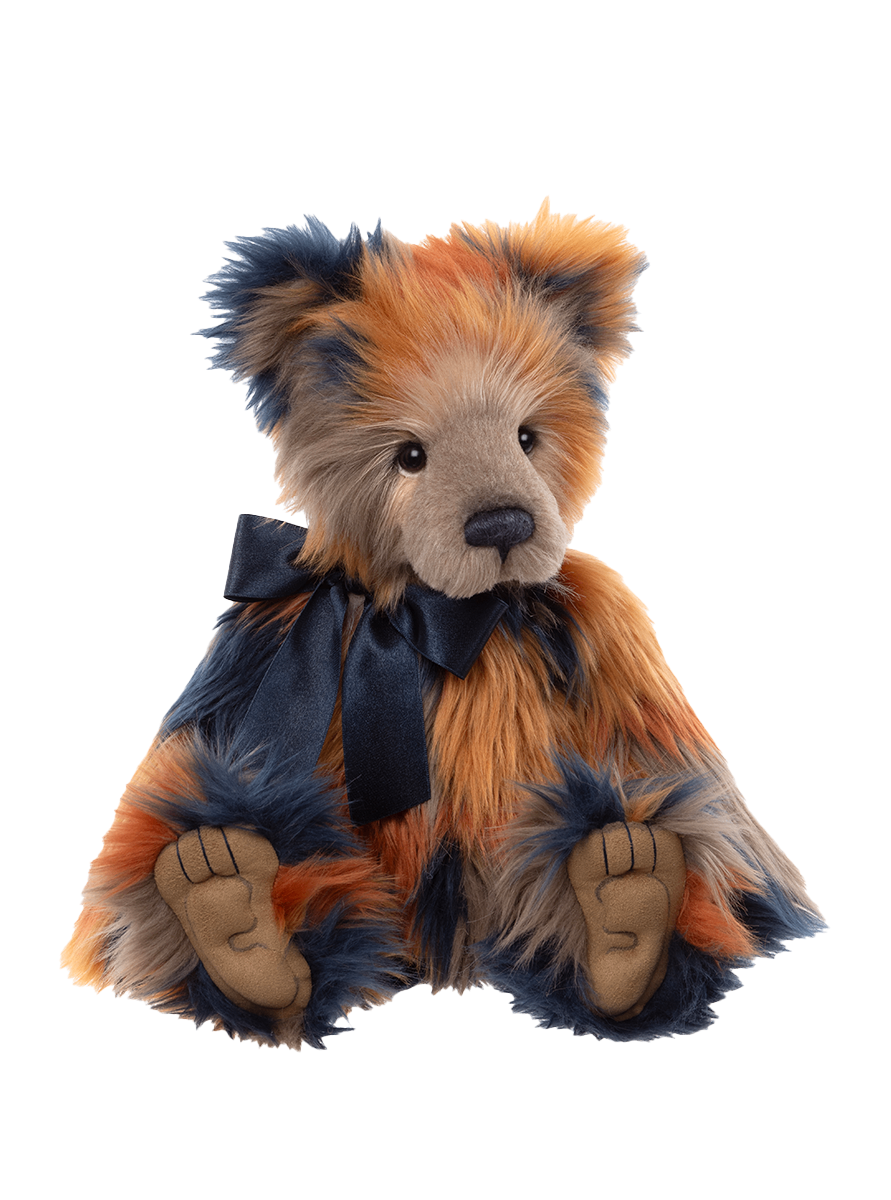 Wilkinson is a beautifully crafted teddy bear made from luxuriously soft long-pile plush that’s simply irresistible to cuddle. His sculptured paws feature delicate, tickly toe detailing, adding a playful touch of personality and charm. He has a carefully hand-embroidered nose and wears a classic navy blue bow tied smartly around his neck. His striking multi-coloured coat, blending warm shades of orange, brown, cream, and dark blue, makes him a true standout in any collection. Suitable for ages 3 years+. Bear height: 44cm/17.5"/14.7 Bear Paws.